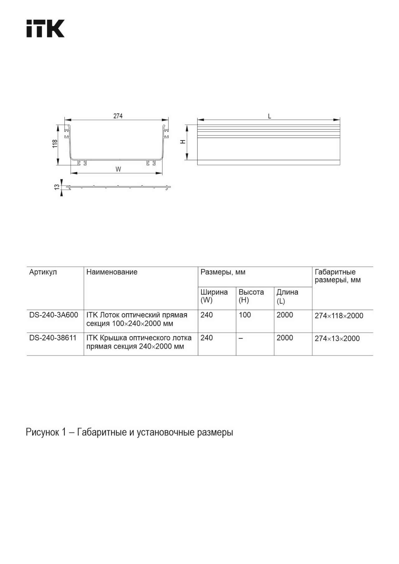 ITK Лоток оптический прямая секция 100х240х2000мм