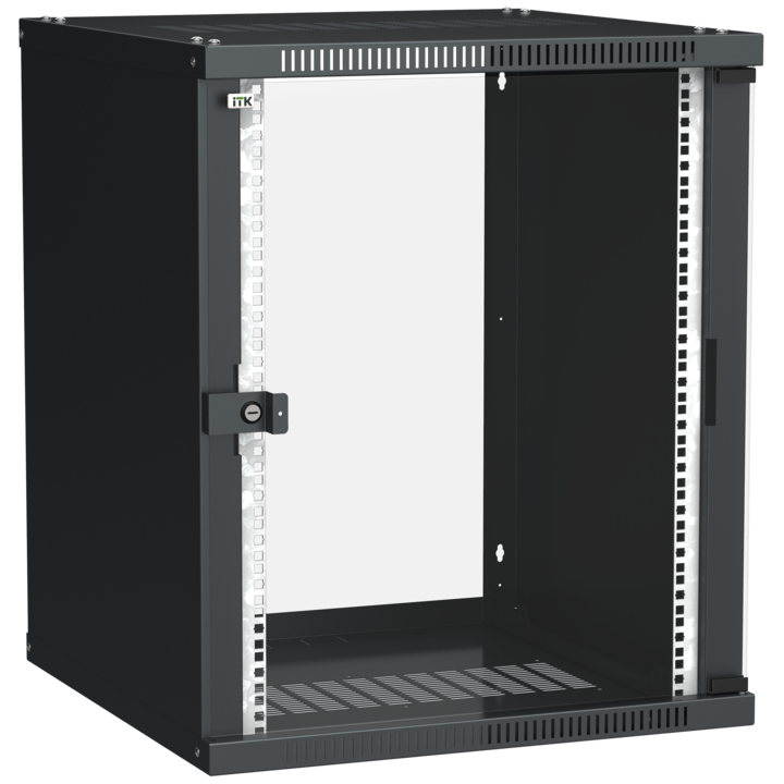 ITK Шкаф настенный LINEA WE 15U 600х600мм дверь стекло черный
