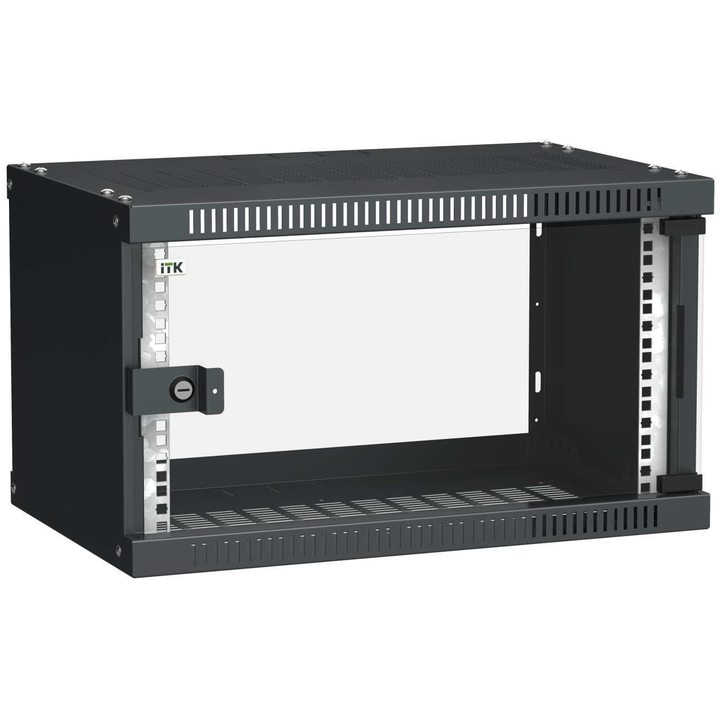 ITK Шкаф настенный LINEA WE 6U 550х350мм дверь стекло черный