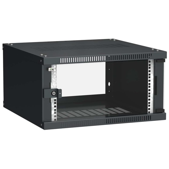 ITK Шкаф настенный LINEA WE 6U 600х600мм дверь стекло черный