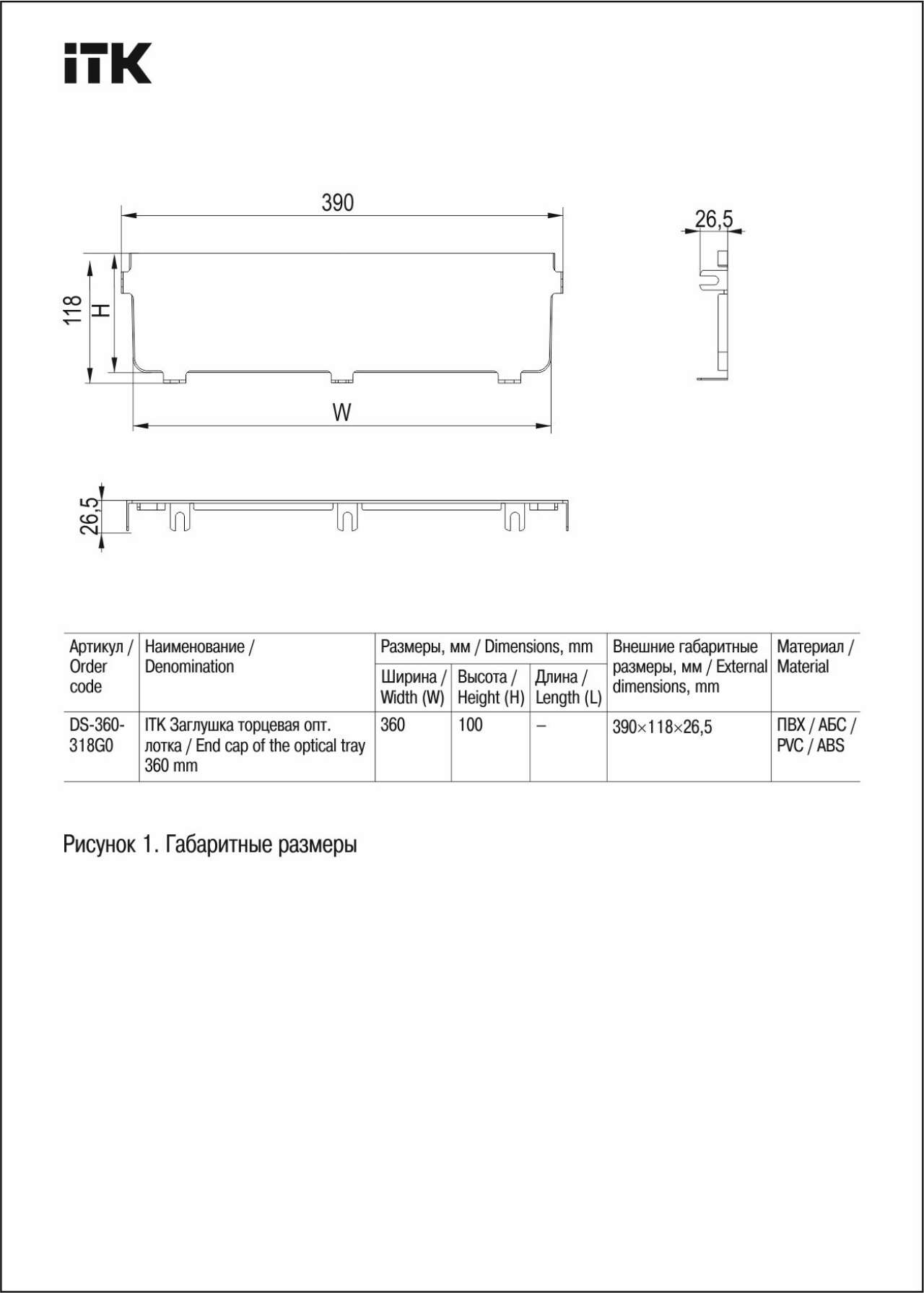 ITK Заглушка торцевая оптического лотка 360мм