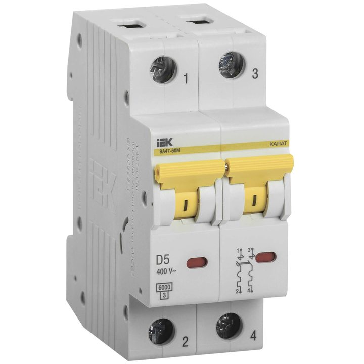 KARAT Автоматический выключатель ВА47-60M 2P D 5А 6кА IEK