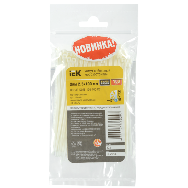 Хомут кабельный морозостойкий Хкм 2,5х100мм белый (100шт) IEK