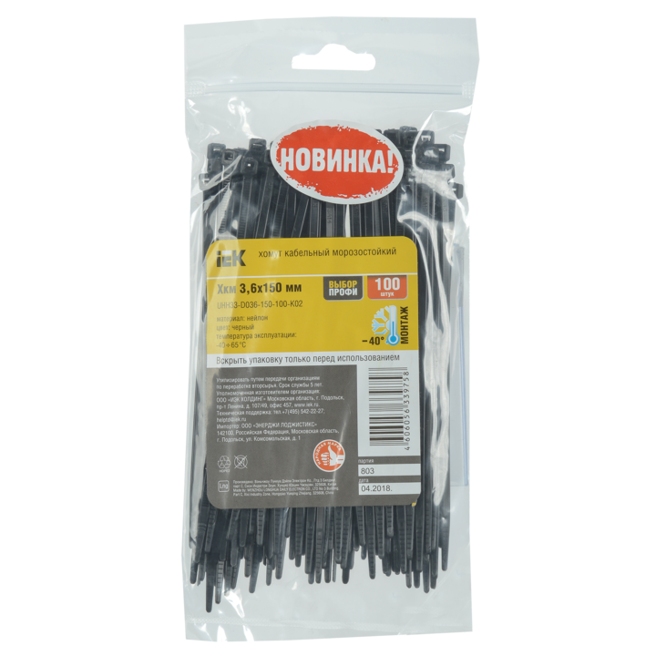 Хомут кабельный морозостойкий Хкм 3,6х150мм черный (100шт) IEK