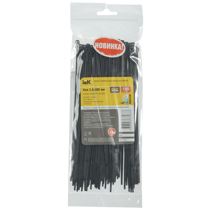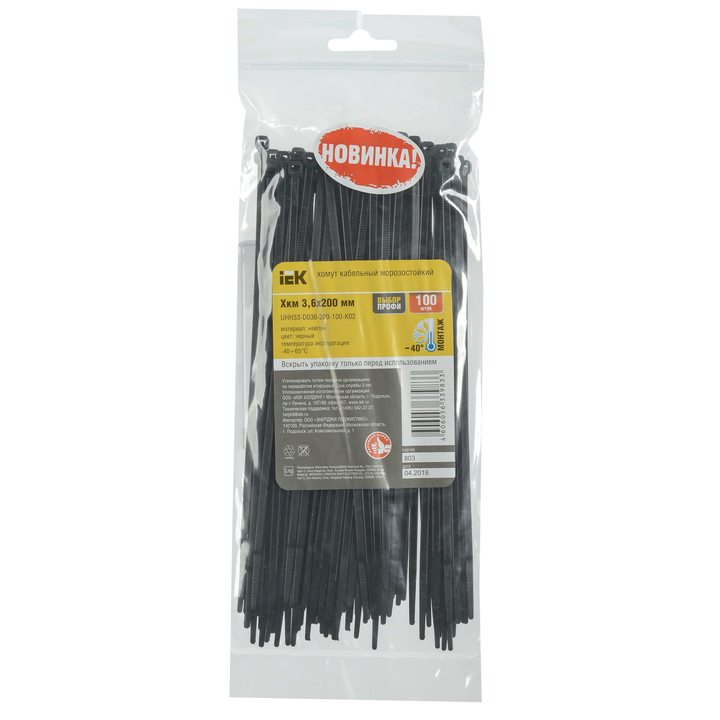 Хомут кабельный морозостойкий Хкм 3,6х200мм черный (100шт) IEK