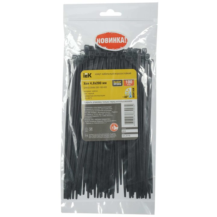 Хомут кабельный морозостойкий Хкм 4,8х200мм черный (100шт) IEK