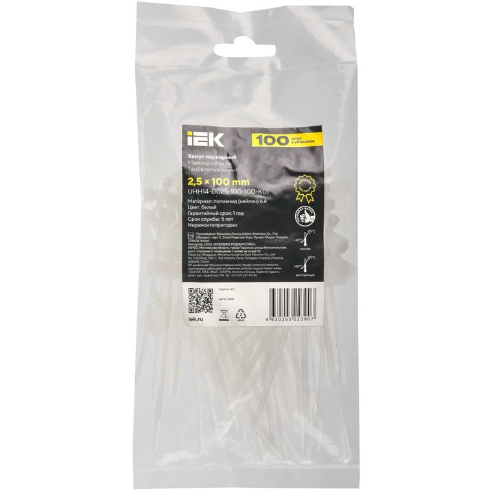 Хомут P6.6 маркерный белый 2,5х100мм IEK