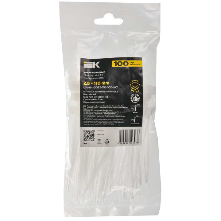 Хомут P6.6 маркерный белый 2,5х110мм IEK