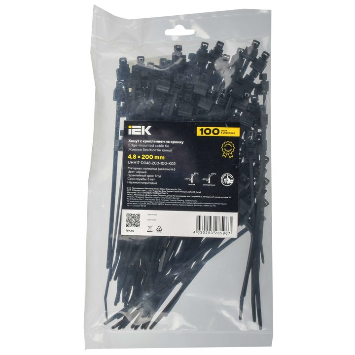 Хомут P6.6 с креплением на кромку чёрный 4,8х200мм IEK