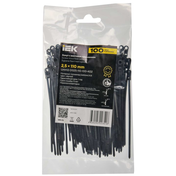 Хомут P6.6 с винтовым креплением чёрный 2,5х110мм IEK