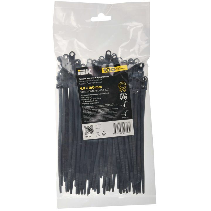Хомут P6.6 с винтовым креплением чёрный 4,8х160мм IEK