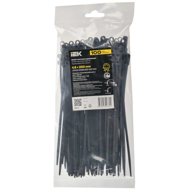 Хомут P6.6 с винтовым креплением чёрный 4,8х200мм IEK