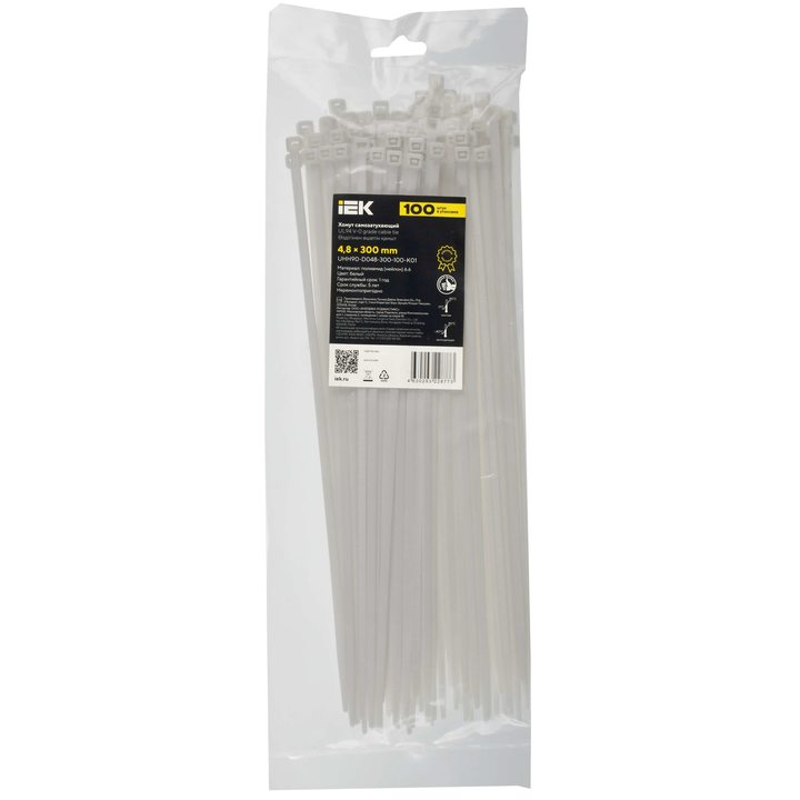 Хомут P6.6 самозатухающий белый 4,8х300мм IEK