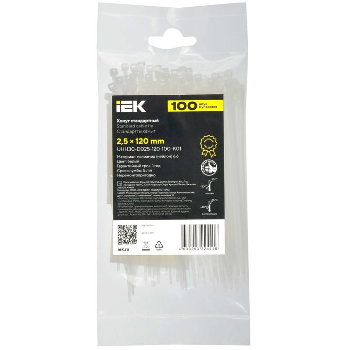 Хомут P6.6 стандартный белый 2,5х120мм IEK