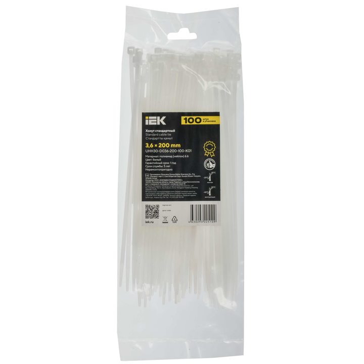 Хомут P6.6 стандартный белый 3,6х200мм IEK