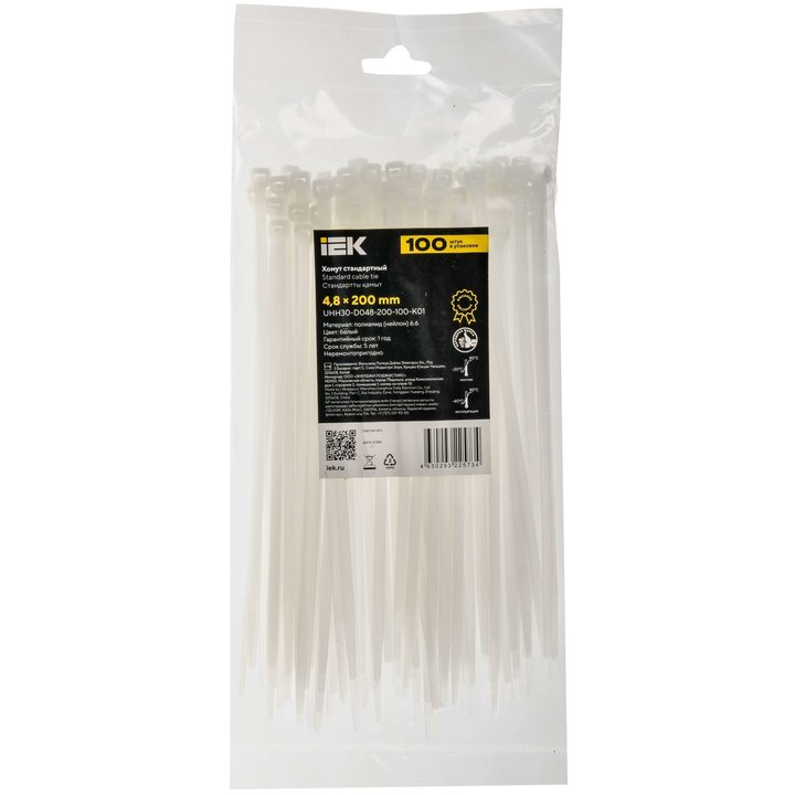 Хомут P6.6 стандартный белый 4,8х200мм IEK