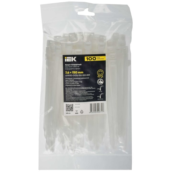 Хомут P6.6 стандартный белый 7,6х150мм IEK
