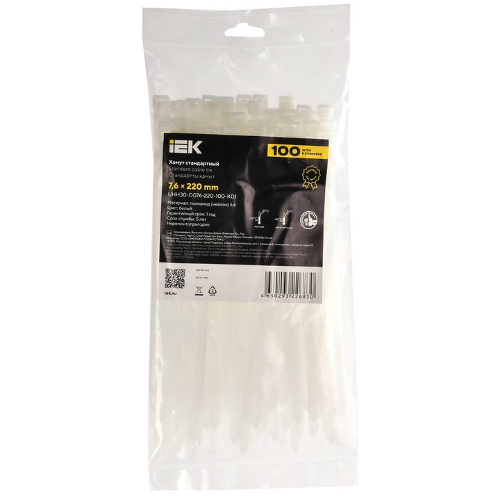Хомут P6.6 стандартный белый 7,6х220мм IEK