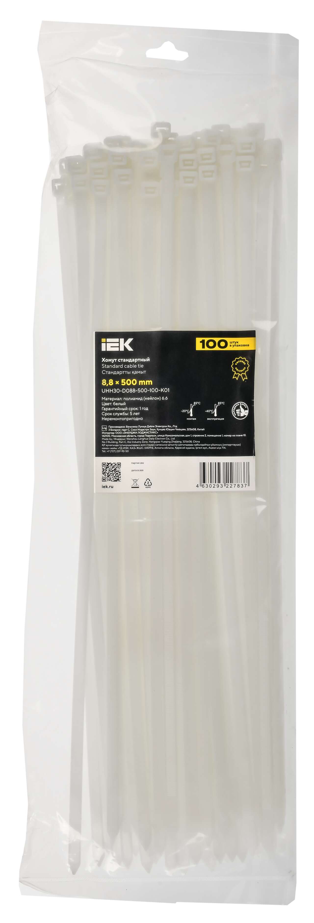 Хомут P6.6 стандартный белый 8,8х500мм IEK