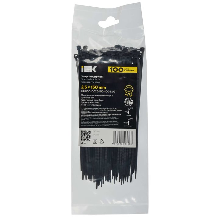 Хомут P6.6 стандартный чёрный 2,5х150мм IEK
