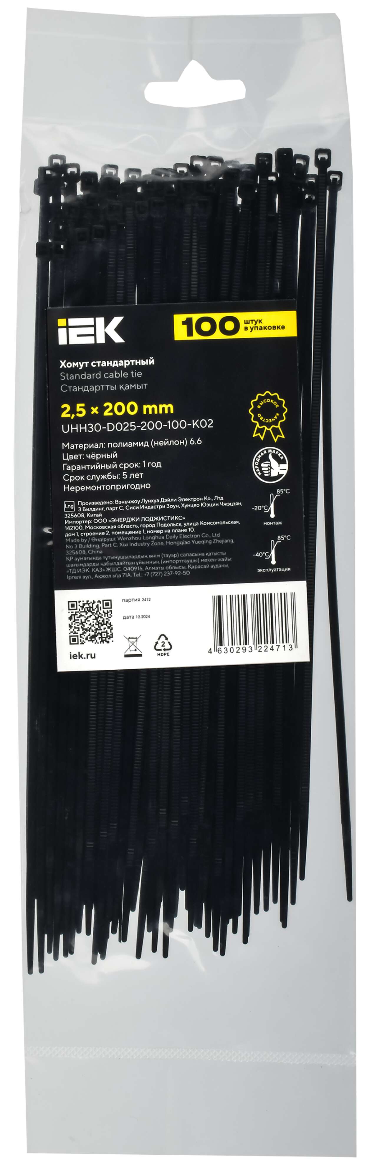 Хомут P6.6 стандартный чёрный 2,5х200мм IEK