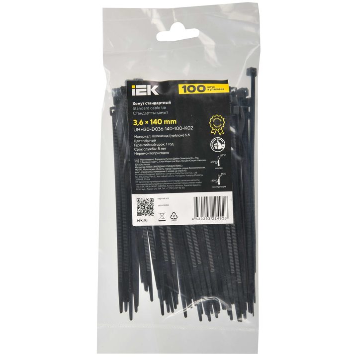 Хомут P6.6 стандартный чёрный 3,6х140мм IEK