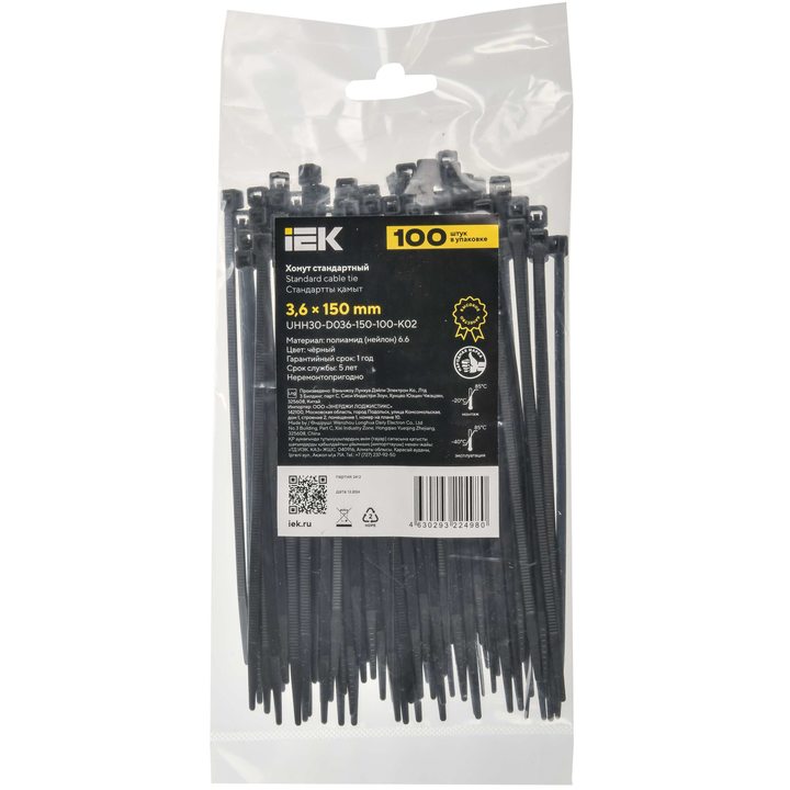 Хомут P6.6 стандартный чёрный 3,6х150мм IEK