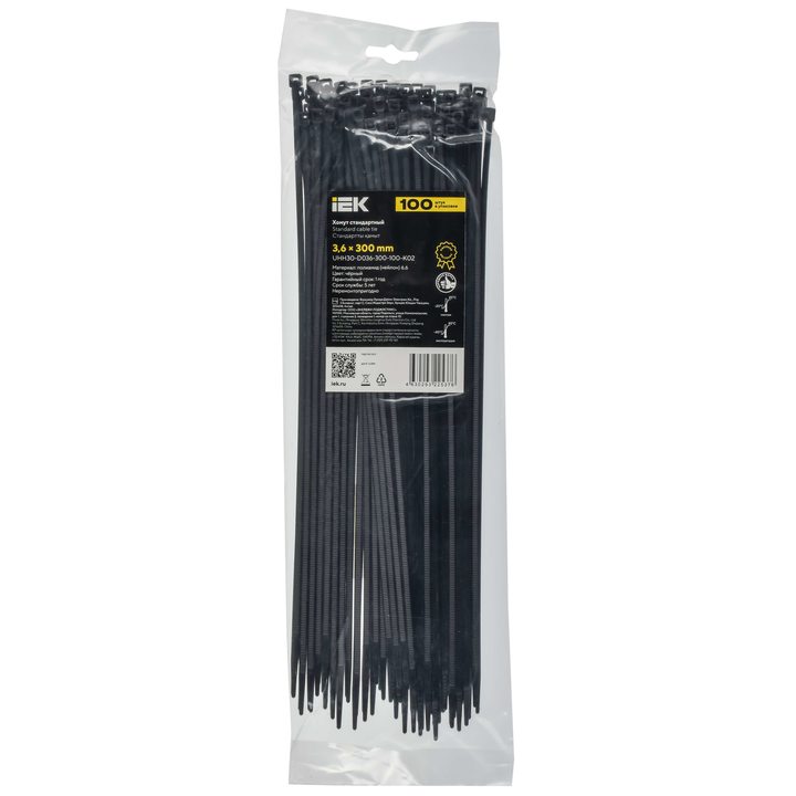 Хомут P6.6 стандартный чёрный 3,6х300мм IEK