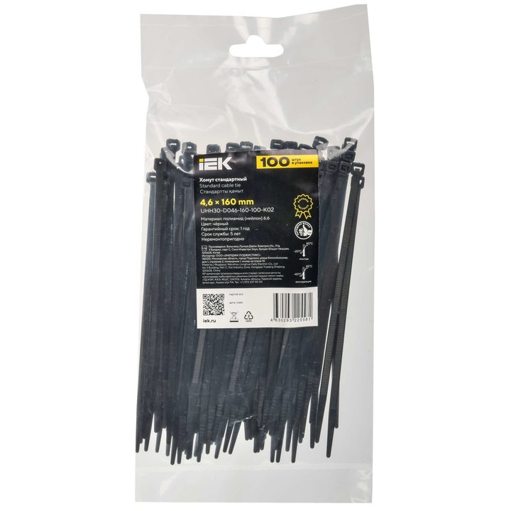 Хомут P6.6 стандартный чёрный 4,6х160мм IEK
