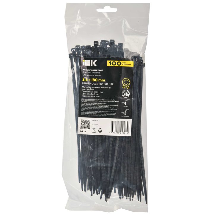 Хомут P6.6 стандартный чёрный 4,6х180мм IEK