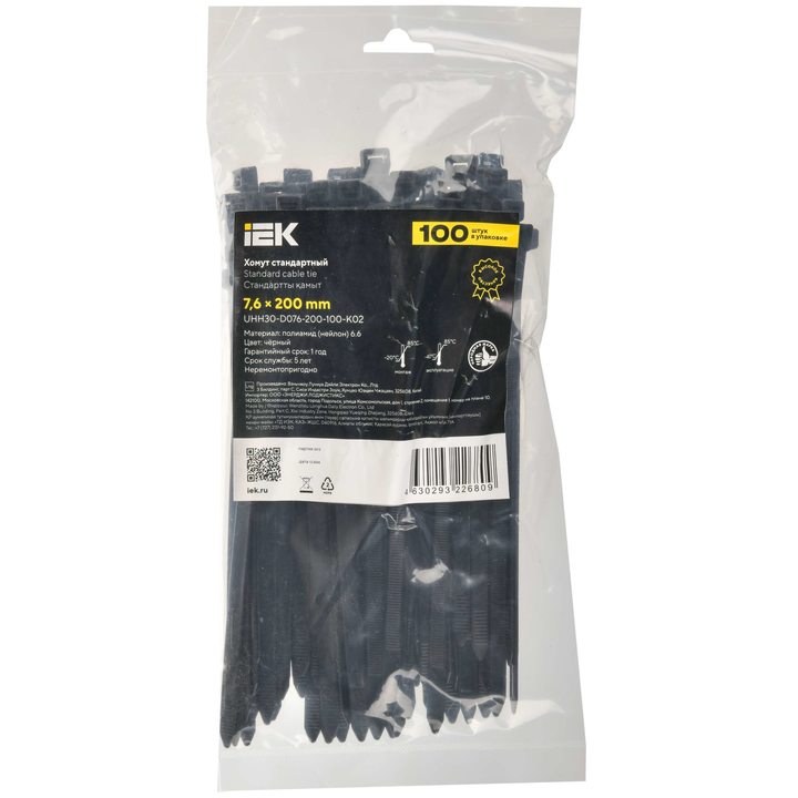 Хомут P6.6 стандартный чёрный 7,6х200мм IEK