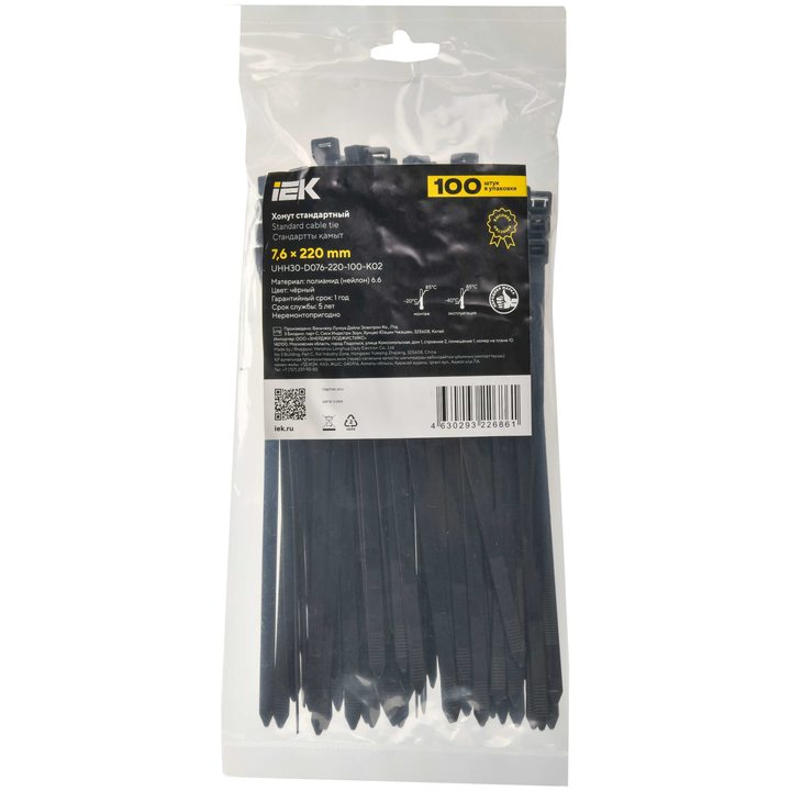 Хомут P6.6 стандартный чёрный 7,6х220мм IEK