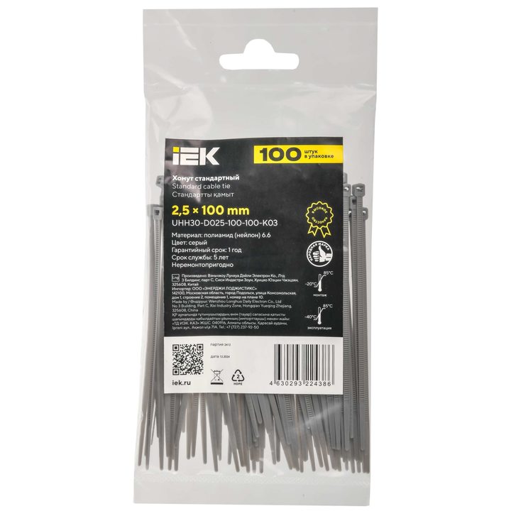 Хомут P6.6 стандартный серый 2,5х100мм IEK