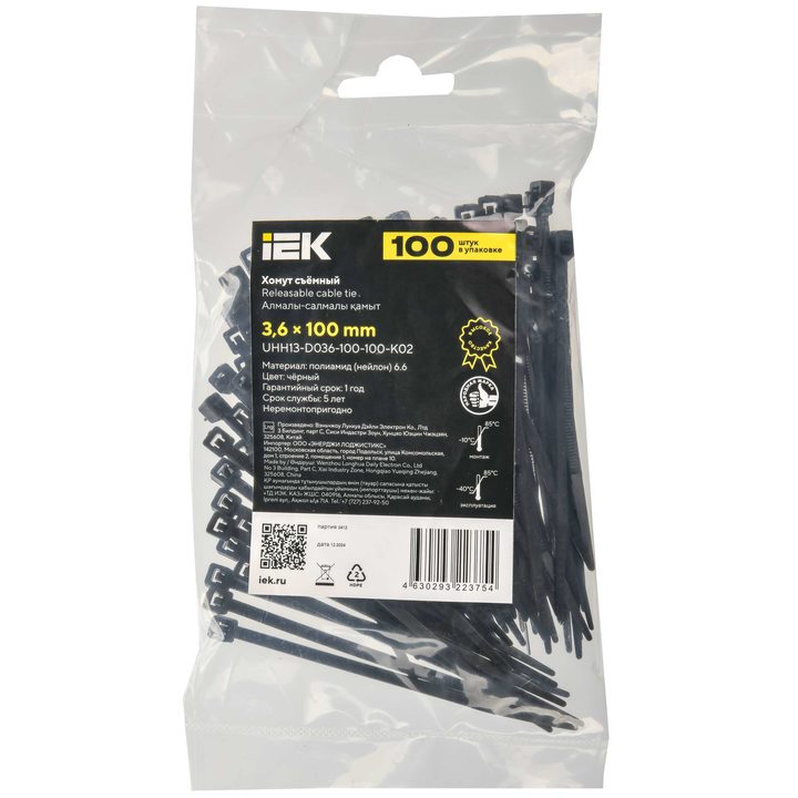Хомут P6.6 съёмный чёрный 3,6х100мм IEK