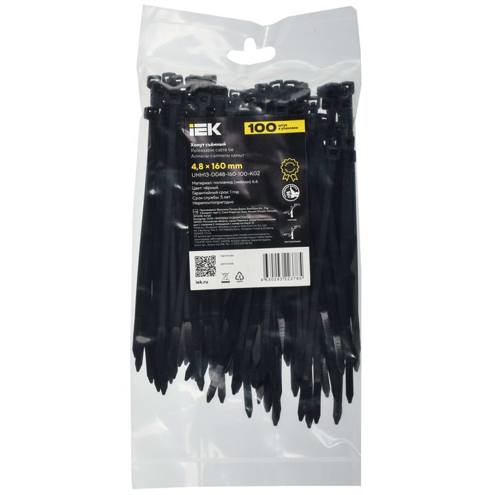 Хомут P6.6 съёмный чёрный 4,8х160мм IEK