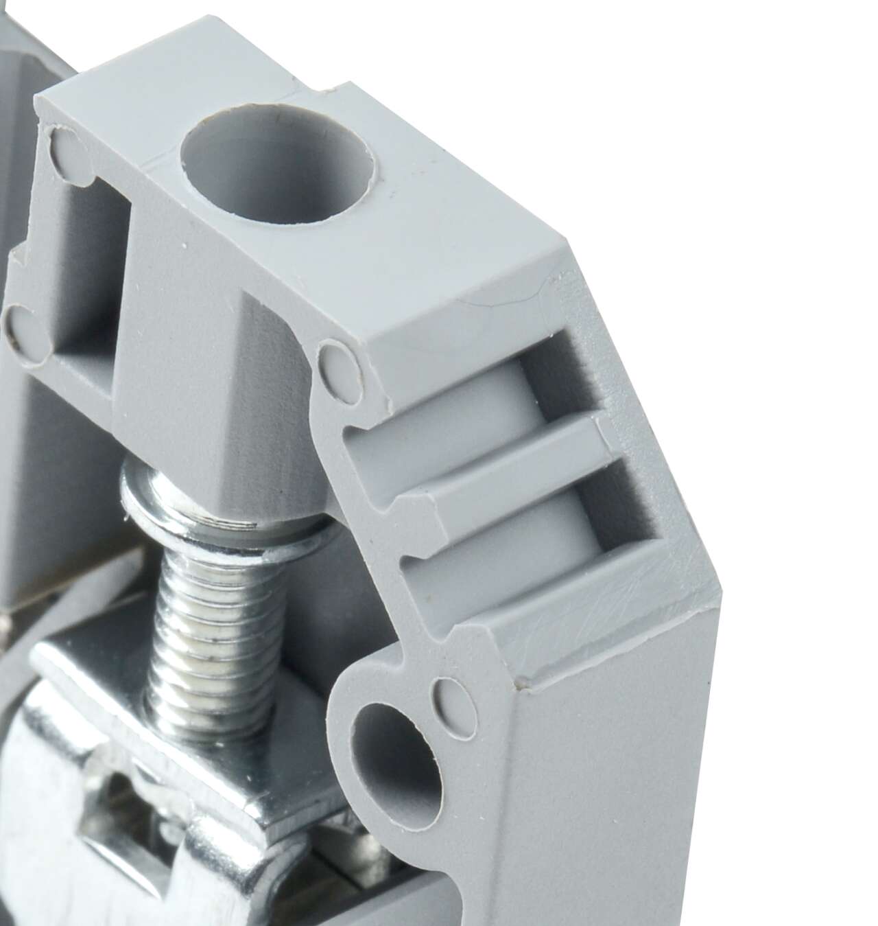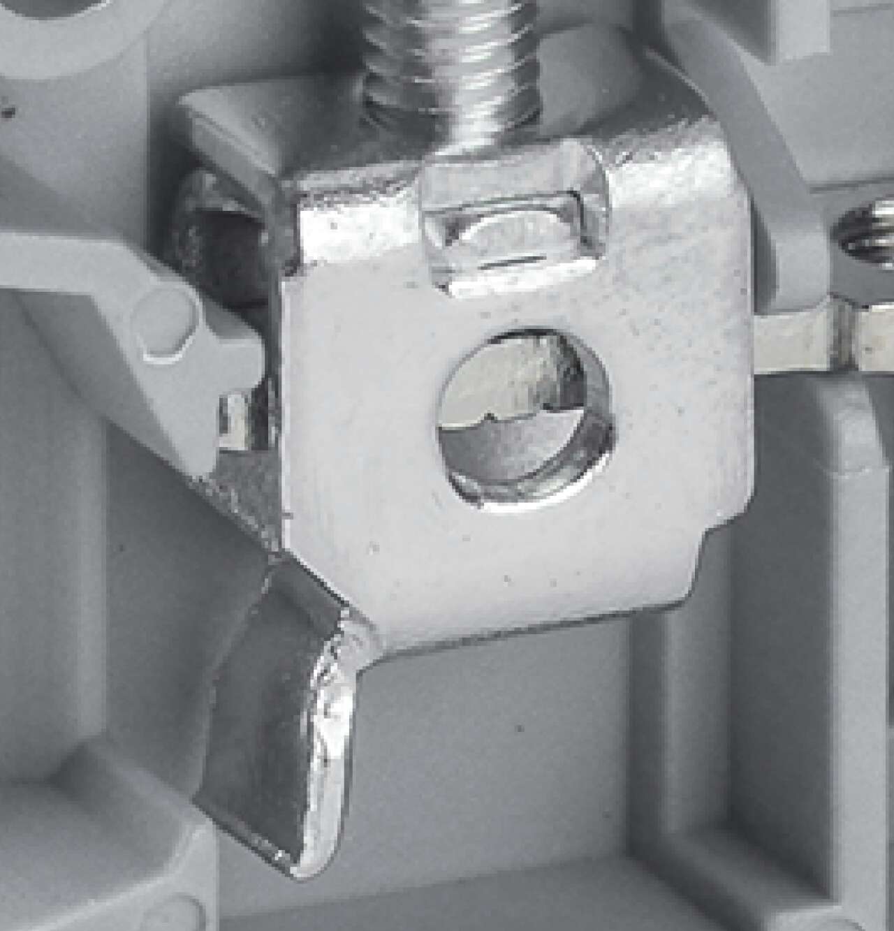 Специальная зажимная клетка уменьшает эффект «самоотвинчивания» винта и позволяет подсоединять проводники с кабельными наконечниками или без них.