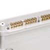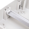 Съемный держатель шин N и PE можно устанавливать как вверху, так и внизу корпуса на специальные крепления. Сами же шины N и PE устанавливаются на съемный держатель простым защелкиванием в посадочные места.