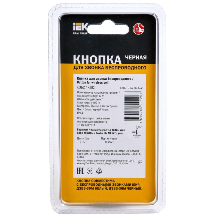 Кнопка для звонка беспроводного КЗБ2 IP44 черная IEK