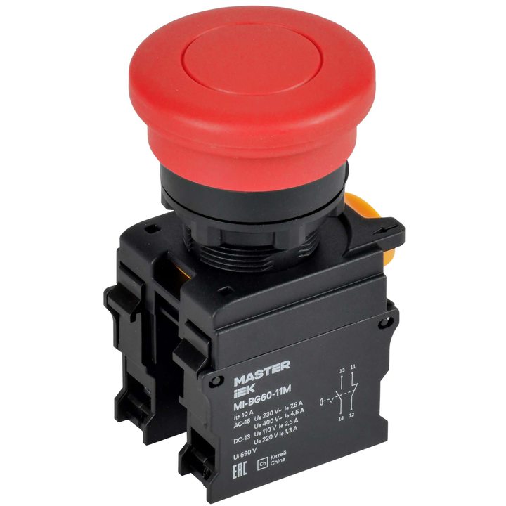 Кнопка Грибок с фиксацией d=22мм 1NO+1NC красная MASTER IEK