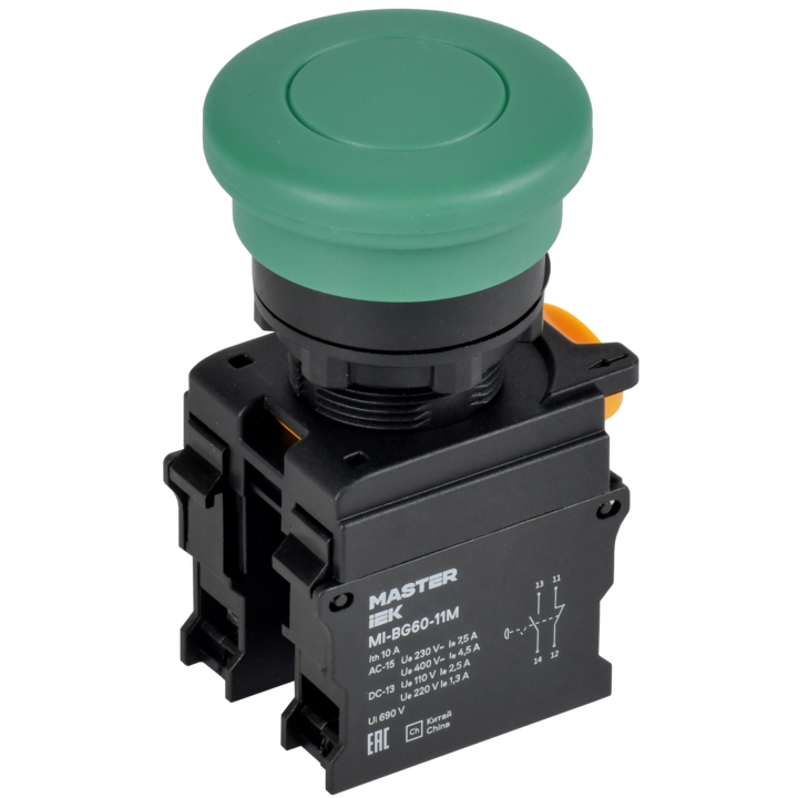 Кнопка Грибок с фиксацией d=22мм 1NO+1NC зелёная MASTER IEK