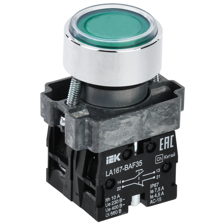 Кнопка управления LA167-BAF35 d=22мм 1NO+1NC зеленая IEK