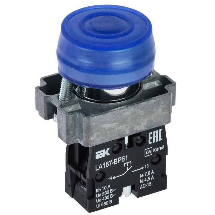 Кнопка управления LA167-BP61 d=22мм 1NO синяя IEK