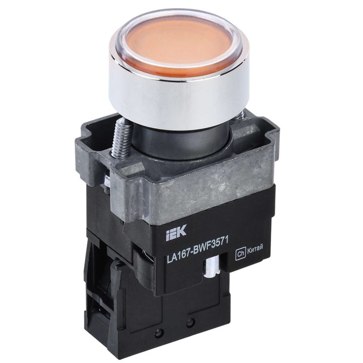Кнопка управления LA167-BWF3571 d=22мм RC 1NO с подсветкой желтая IEK