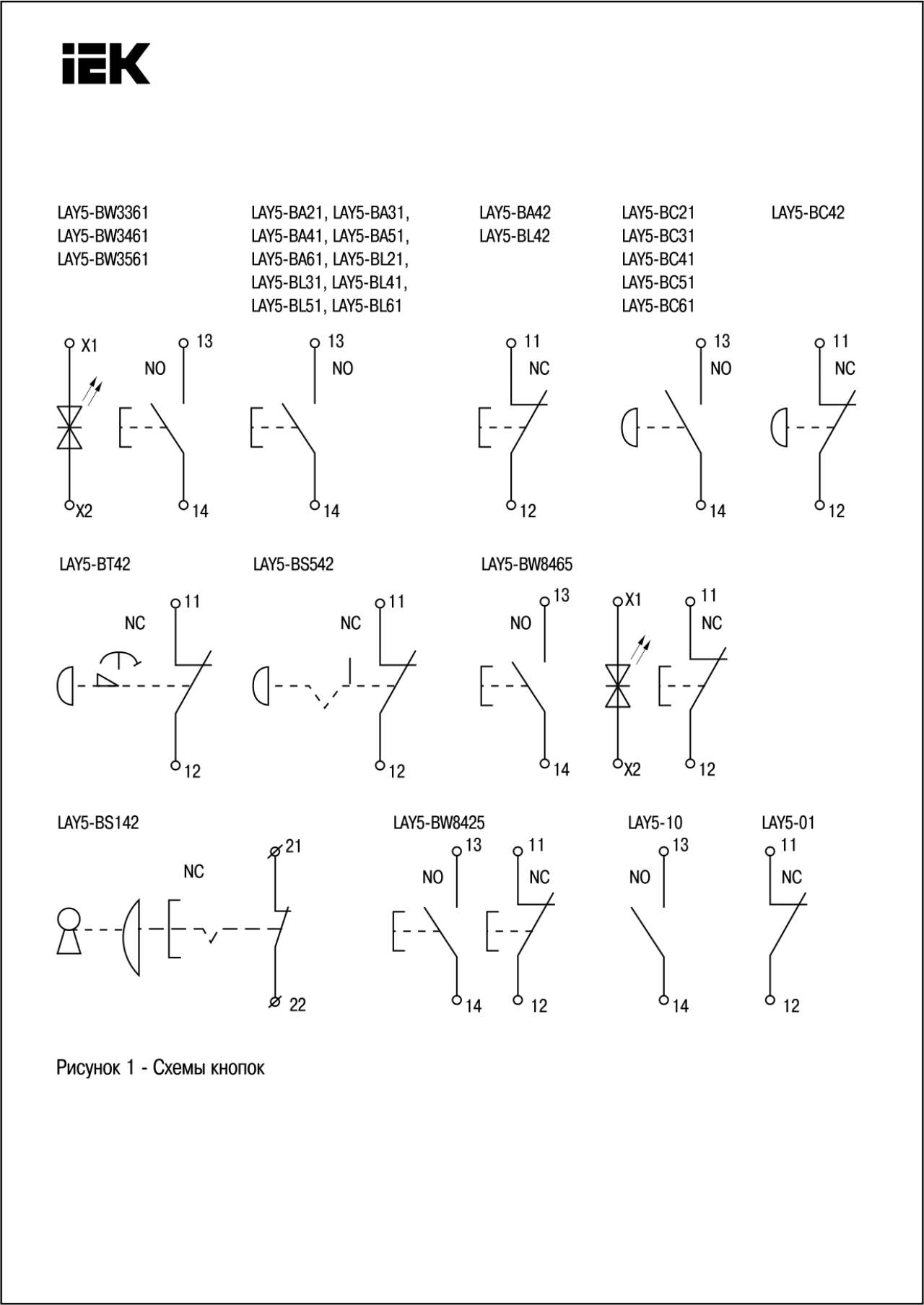 Кнопка управления LAY5-BC61Грибок без подсветки синяя 1з IEK