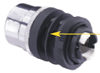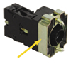 Удобство монтажа контактного модуля, который присоединяется к блоку кнопки за счет фиксации пластмассовым флажком.