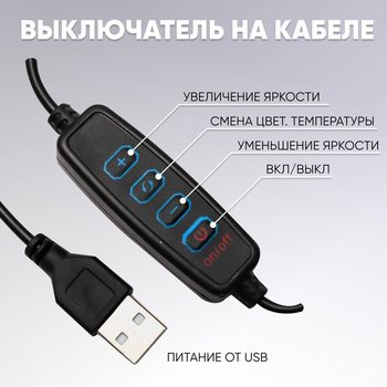 Кольцевая лампа Uzumi 245 мм с USB проводом, с регул. цвет.тем-ры 3000-6000К, WD-7777
