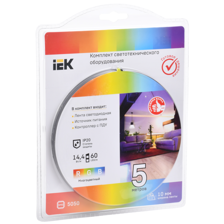 Комплект светодиодной подсветки Сделай сам (лента LED 5м LSR-5050RGB60-14,4-IP20-12В + драйвер + контроллер) IEK