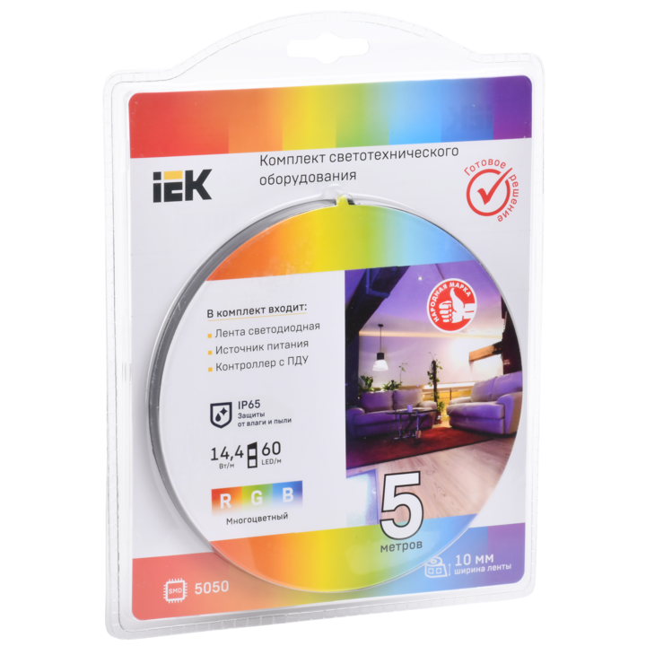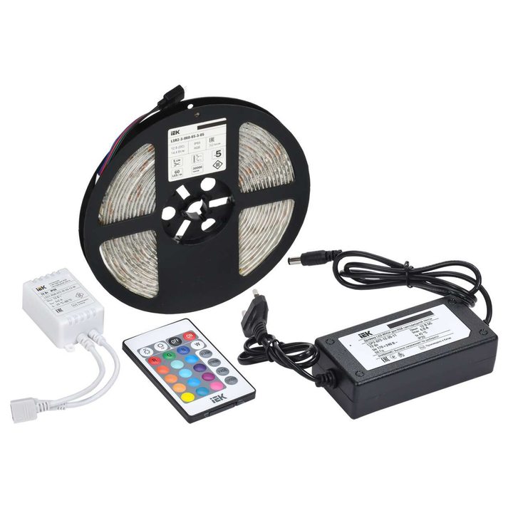 Комплект светодиодной подсветки Сделай сам (лента LED 5м LSR-5050RGB60-14,4-IP65-12В + драйвер + контроллер) IEK