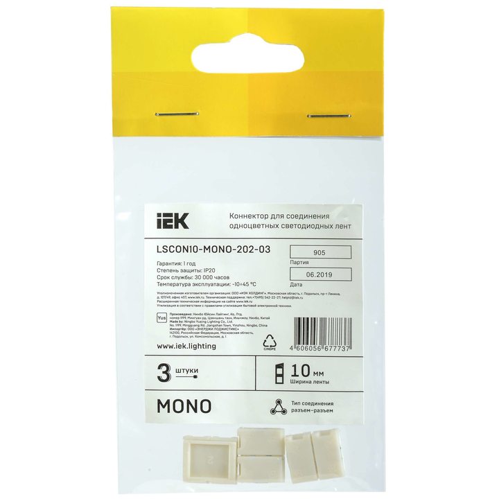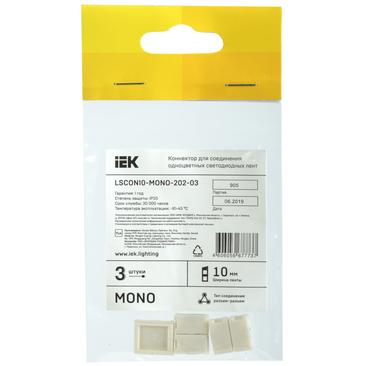 Коннектор 3шт MONO 10мм (разъем-разъем) IEK