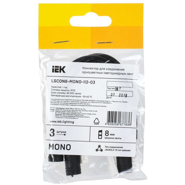 Коннектор 3шт MONO 8мм (JACK5,5-15см-разъем) IEK
